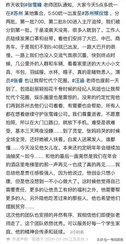 3月28日,张雪峰追悼会现场画面曝光,好兄弟亲自为先生守夜,女儿的话让人泪流不止,担心的事情终究还是发生了。